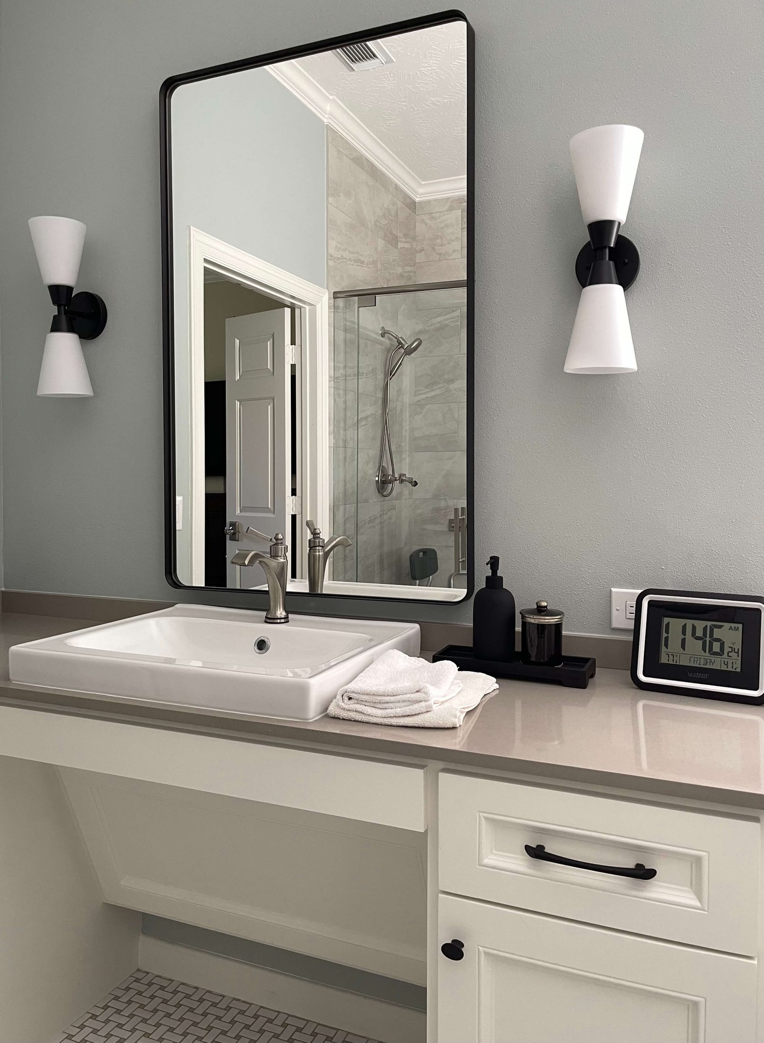 One of the most impactful areas to address is the bathroom. Features such as curbless walk-in showers, grab bars, non-slip flooring, and comfort-height toilets can significantly improve safety, while maintaining a clean, modern look. Adding shower benches, handheld showerheads, and anti-scald valves further enhances comfort and usability. Wider doorways and lever-style handles throughout the home also make everyday use easier, especially for those using walkers, wheelchairs, or mobility aids. In the kitchen, incorporating pull-out shelves, varied counter heights, and easy-to-reach storage can enhance both convenience and usability. Touchless faucets and induction cooktops provide additional safety benefits.